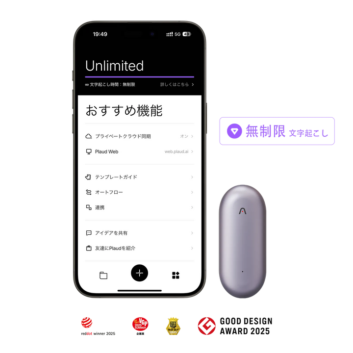 Plaud Note Proと無制限プランを組み合わせれば、会議・講義・取材・法務・医療など、どんなシーンでも“24時間対応のAI記録アシスタント”として活用できます。