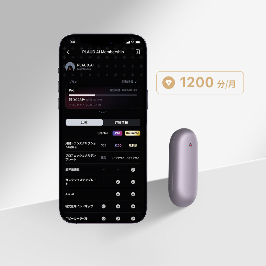 PLAUD NOTEプラン比較:スタータープランvs.年間プロプラン vs. 年間無制限プラン